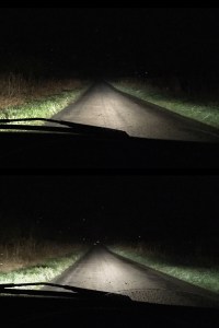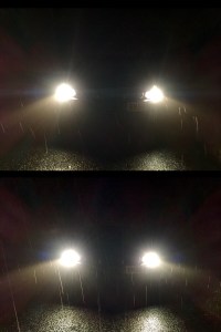 While it’s difficult to show these results in a photo, as you can see from the comparison; the colour of the light is brighter, and the shape of the beam is slightly enlarged on the road.